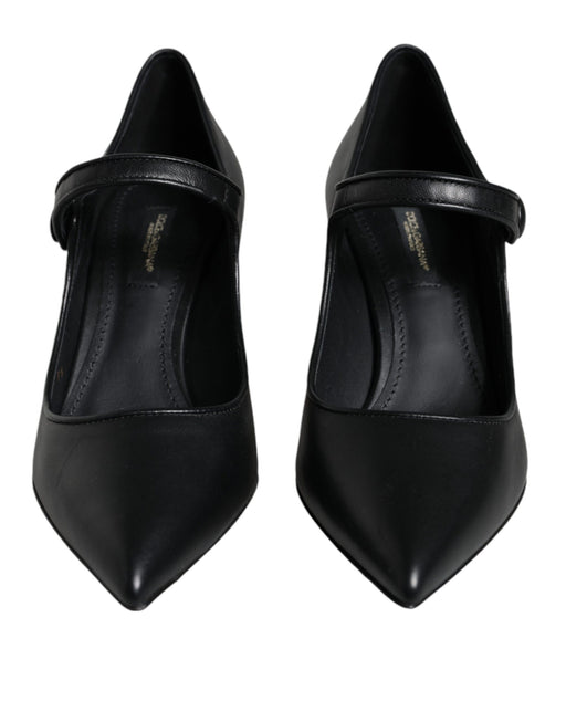 Dolce & Gabbana Black Leather Logo Heels Mary Janes Pumps Shoes