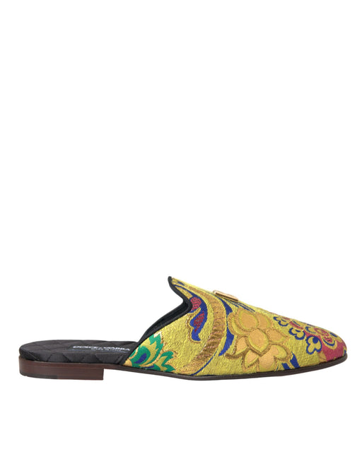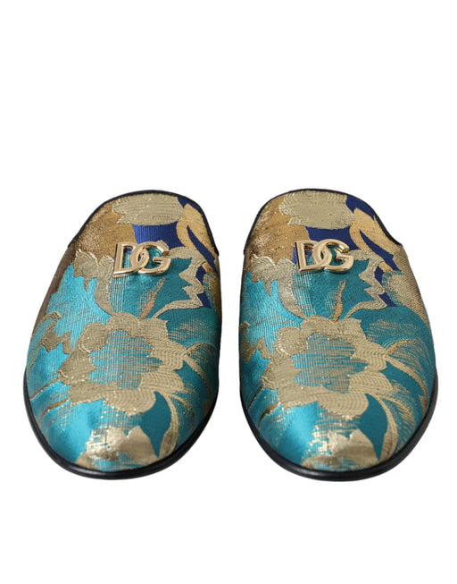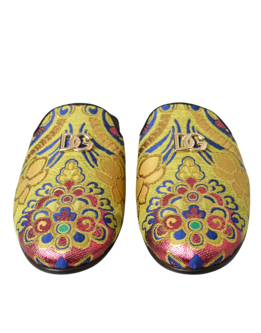 Dolce & Gabbana Multicolor Jacquard DG Logo Mule Flat Sandals Shoes