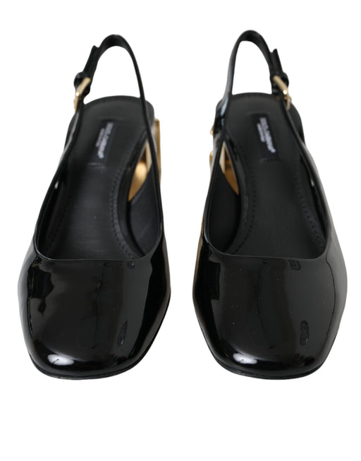 Dolce & Gabbana Black Gold Leather Embellished Slingbacks Shoes