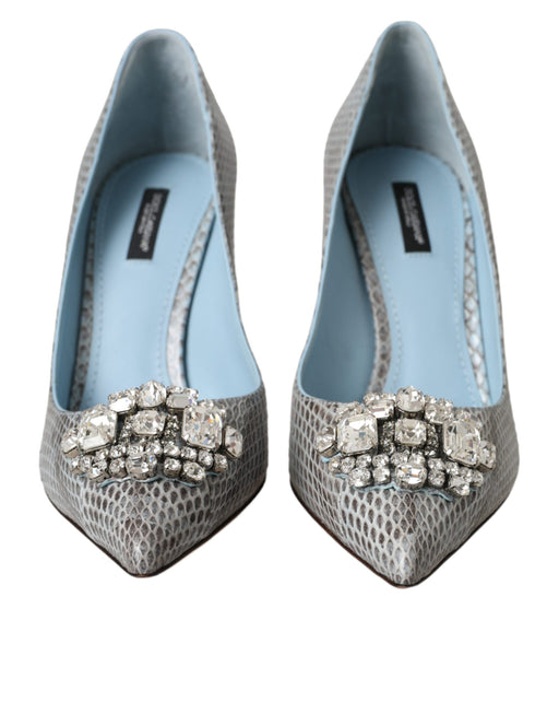 Dolce & Gabbana Light Blue Exotic Leather Crystal Bellucci Shoes