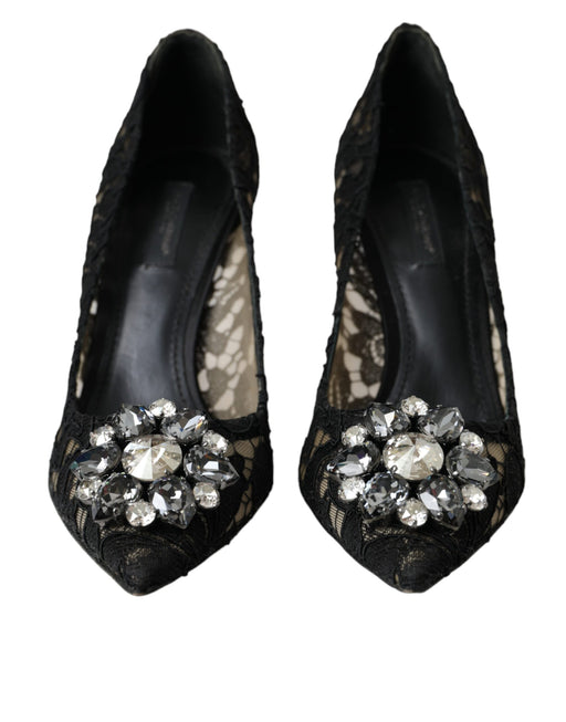 Dolce & Gabbana Black Taormina Lace Crystal Heel Pumps Shoes