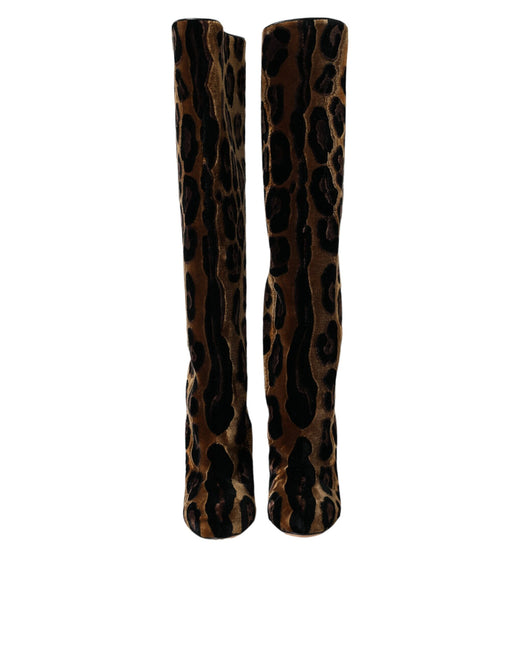 Dolce & Gabbana Brown Giraffe Velvet Leather Boots Shoes
