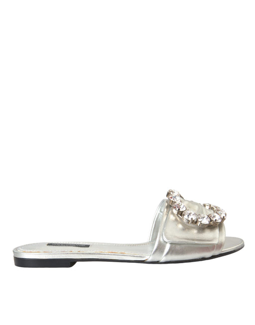 Dolce & Gabbana Silver Crystal Leather Flats Sandals Shoes