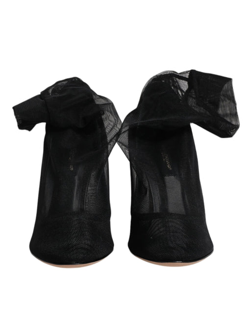 Dolce & Gabbana Black Lace Stretch Heels Mid Calf Boots Shoes