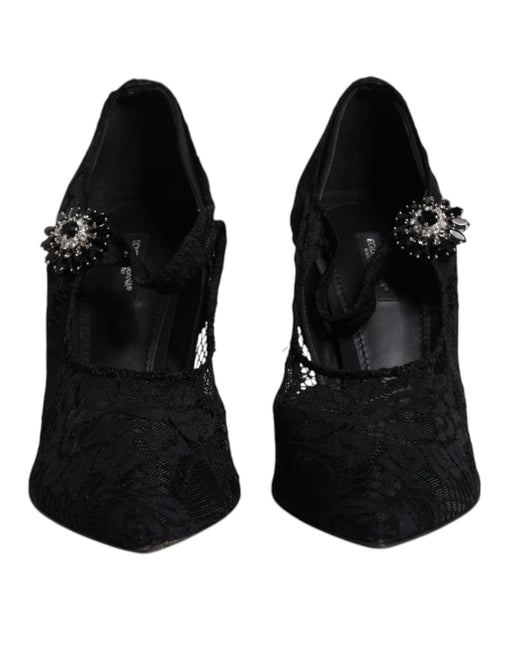 Dolce & Gabbana Black Lace Crystals Mary Jane Pumps Shoes