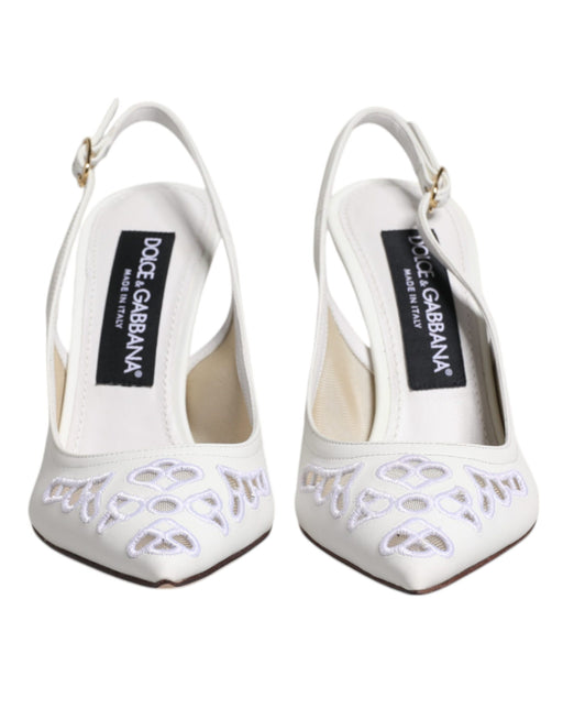 Dolce & Gabbana White Leather Stiletto Heels Slingback Shoes