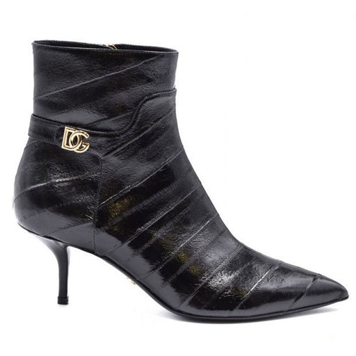 Original price $1,055.15Current price $965.94| /Dolce & Gabbana eel leather ankle boots with metallic DG logo on the side, side zipper openingHeel: 6 cm