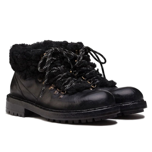 Original price $1,109.29Current price $867.19| /Dolce & Gabbana black calfskin and merino wool parts booties, rubber lugged sole