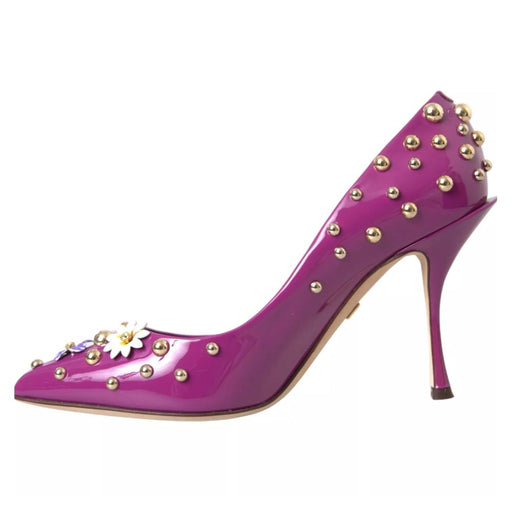 Original price $1,109.29Current price $867.19| /Dolce & Gabbana purple patent calfskin pumps with spherical and floral applied rhinestones, smooth suede interior, goatskin sole.Heel: 10 cm