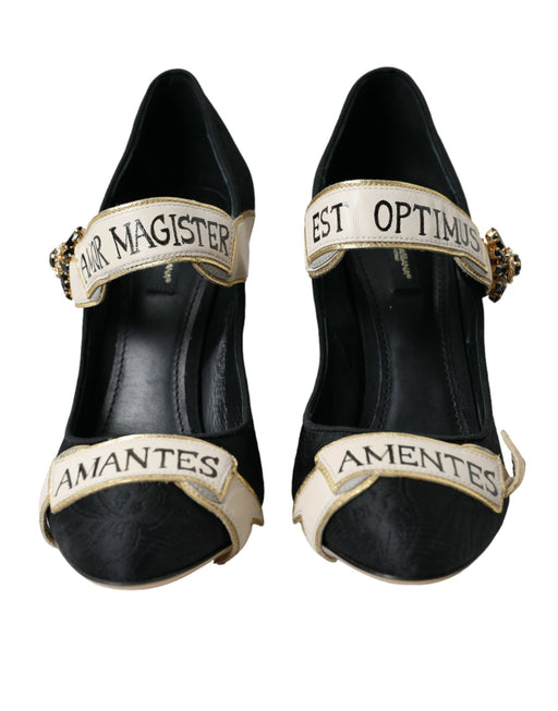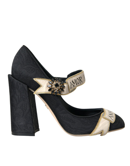 Dolce & Gabbana Black Brocade Mary Janes Crystal Pumps Shoes