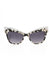 Dare to stand out with Frankie Morello’s stunning fusion of edgy and elegance. These glossy black cat-eye sunglasses are designed to capture attention, featuring exquisite mother of pearl details that add a luxurious touch to your ensemble. Perfect for fashion-forward individuals who aren’t afraid to make a statement. Versatile and stylish, they offer not only a fashion piece but a sanctuary for your eyes with black shaded lenses.