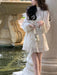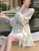 Beach Style Chiffon Mini Dress Office Lady Casual Long Sleeve Elegant One Piece Dress Fashion Clothing Summer