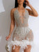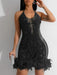 Black white slip sequin summer dress women party club dress see through mesh midi evening dresses