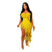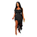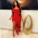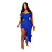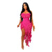 Women Strapless Ruffles Tassel Irregular Bodycon long Maxi Dress