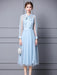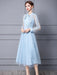 Elegant Bow Collar Lace Patchwork Midi Mesh Dresses for Women Party Designer Long Sleeve Sexy Vestidos