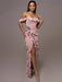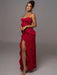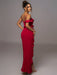 Elegant Ruffle Sexy Maxi Dress Women Spaghetti Strap Flower Sleeveless Backless High Split Club Party Evening Dress