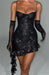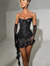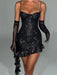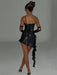 Elegant Strapless Ruffle Sexy Mini Dress For Women Fashion Off-shoulder Backless Sequins Sparkle Club Party Dress