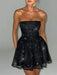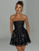 Elegant Strapless Sexy Mini Dress Women Fashion Black Off-shoulder Backless Pleated Sequins Sparkle Club Party Dress