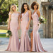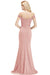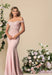 Embroidered Illusion Lace Tops Bridesmaid Dress Off-the-shoulder Neckline Draped Banded Sleeves Mermaid Gown