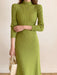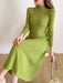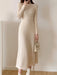 Fall Winter Slim Long Sleeve Party Midi Dress for Women Knitted Half High Collar Elegant Knitted Sweater Dresses