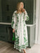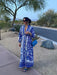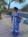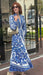Fashion Blue Print Single Breast Maxi Dress Women Elegant Lapel Long Lantern Sleeves Long RobesBeach Vocation