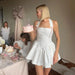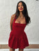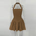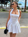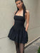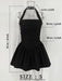 Frill Mini Halter Dress For Women Splice Sexy Backless A-Line Hem Lace Up High Waisted Female Beach Black Bodycon Dress
