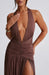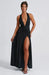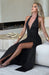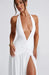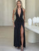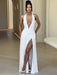 Halter Deep V Neck Backless Maxi Dress For Women Fashion Solid Sleeveless Thigh High Split Sexy Long Dress Elegant