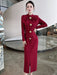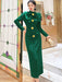 Midi Dresses for Women Elegant Black Green Long Sleeve Straight Party Robe Femme Plus Size XXL