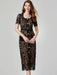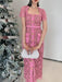 Pink Lace Square Neck Gold Button Lace Hollow Out Dress For Women