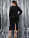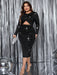 Plus Size Cutout Slit Round Neck Long Sleeve Dress