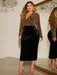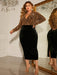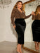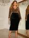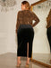 Plus Size Surplice Neck Long Sleeve Slit Dress
