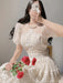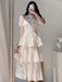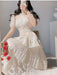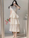 Retro Short Sleeved Lace Patchwork Fashion Slim Big Swing O-Neck Long Party Dress