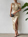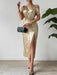 Slit One Shoulder Short Sleeve Midi Dress