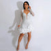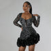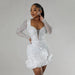 Spring Women Long Sleeve Ruffles Hot Drilling Bead Short Dress Sexy Night Club Evening Birthday Mini Dresses