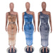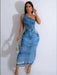 Women Fake Jean 3D Printed One Shoulder Sleeveless Bodycon Midi Maxi Dress Club Sexy Party Long Dresses