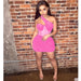 Women Sequined Halter Neck Sleeveless Bodycon Mesh Mini Midi Dress Summer Sexy Club Party Evening Dresses