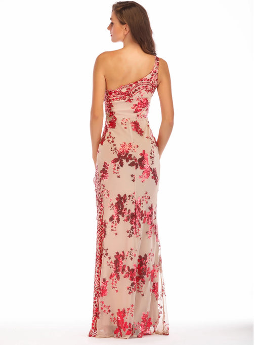 One shoulder Sequins Long dress women summer party dress elegant luxury Night club bodycon maxi dresses