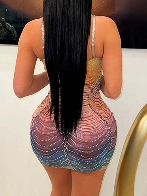 Backless mini rhinestone party dress women elegant luxury bodycon club evening dresses