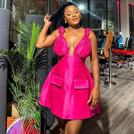 Summer Women Sleeveless Elegant V-Neck High Waist A-Line Dress Bow Strap Backless Night Club Party Dresses