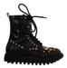 Step into luxury with these exquisite Black Formal Boots. Crafted with premium 100% Calfskin Leather, each pair is a testament to impeccable Italian craftsmanship. Adorned with eye-catching crystals and studs, these boots are guaranteed to make a statement at any high-end event. Complete with a convenient side zip closure and classic lace-up design, Dolce & Gabbana delivers both elegance and practicality. Exuding opulence with every step, these boots feature a durable rubber sole and the iconic brand logo detailing, ensuring style without compromising on quality.