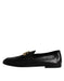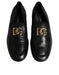 Dolce & Gabbana Black Leather Logo Slip On Loafers Shoes
