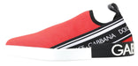 Step out in style with these exquisite loafers, newly crafted with an eye for luxury. These stunning Dolce & Gabbana loafers are the epitome of Italian sophistication, designed for the man who appreciates timeless elegance combined with modern flair. The bold tri-tone color palette of red, white, and black is sure to turn heads, while the high-quality blend of materials promises both comfort and durability. With their distinctive logo details and robust rubber sole, these loafers are the perfect addition to any discerning gentleman’s wardrobe.