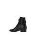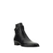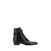 Calfskin Wyatt Boots by Saint Laurent, almond toe front, matching leather ankle lap strap closure with metal buckle on outer side panel, slight leather block heel.