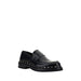 Calfskin Rockstud M-Way Loafers by Valentino Garavani, slightly elongated round toe, leather block heel, iconic Rockstud studs applied in contrasting perimeter of sole, contrasting logo-embossed insole.