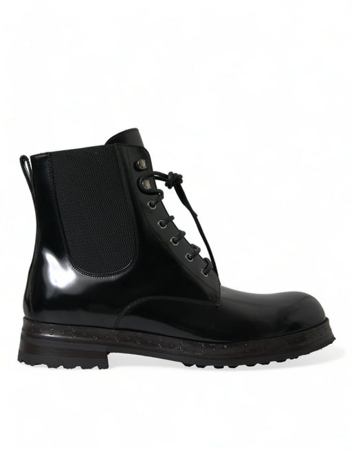 Dolce & Gabbana Equisite Black Lace-Up Leather Boots