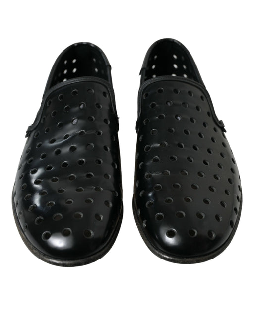 Dolce & Gabbana Elegant Black Leather Perforated Loafers
