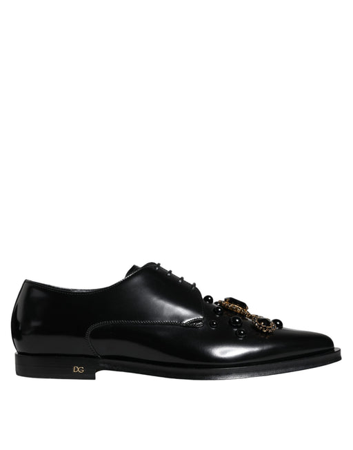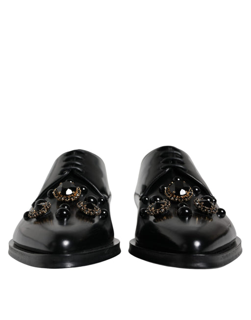 Dolce & Gabbana Black Leather Crystal Lace Up Formal Shoes