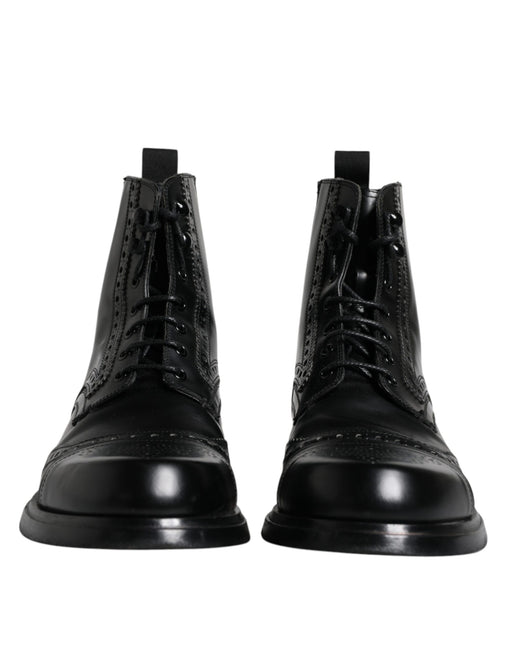 Dolce & Gabbana Black Leather Lace Up Mid Calf Boots Shoes