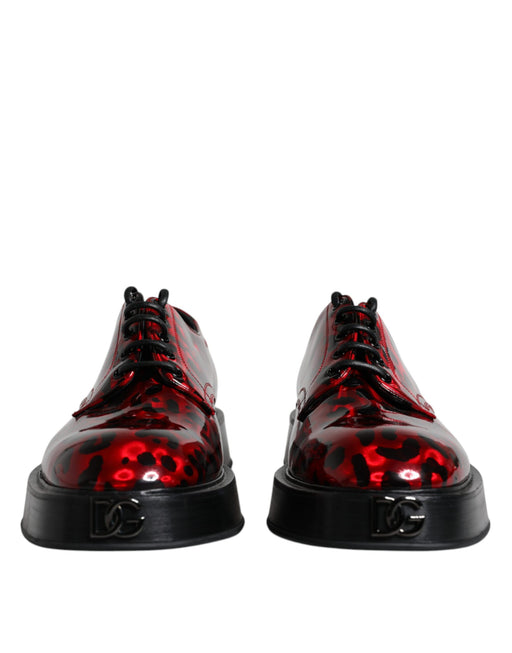 Dolce & Gabbana Red Black Leopard Lace Up Derby Dress Shoes