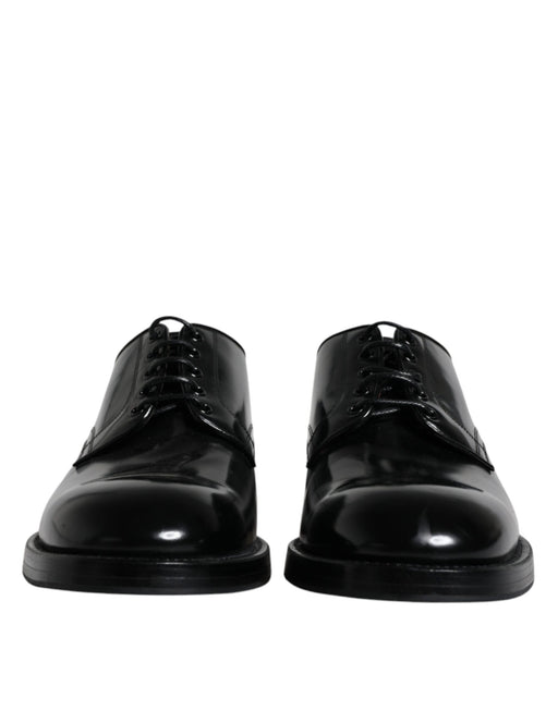 Dolce & Gabbana Black Leather Lace Up Men Derby Formal Shoes